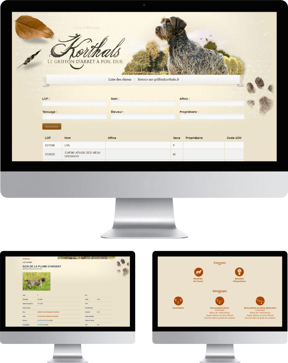 - Fiche complète de chaque chien avec photos